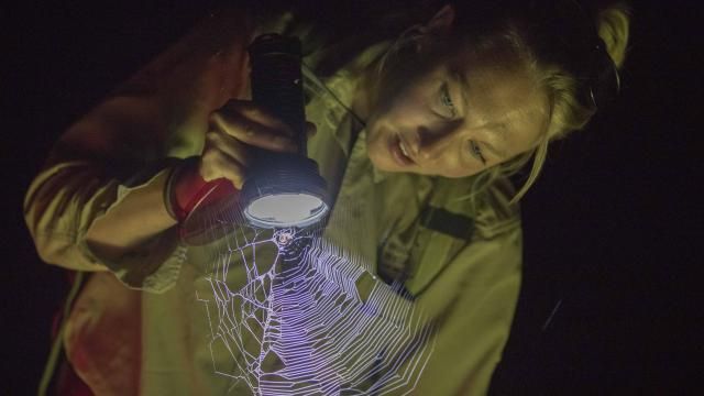 Ecologist shows visitors a spiders web – photo by Peter Taylor