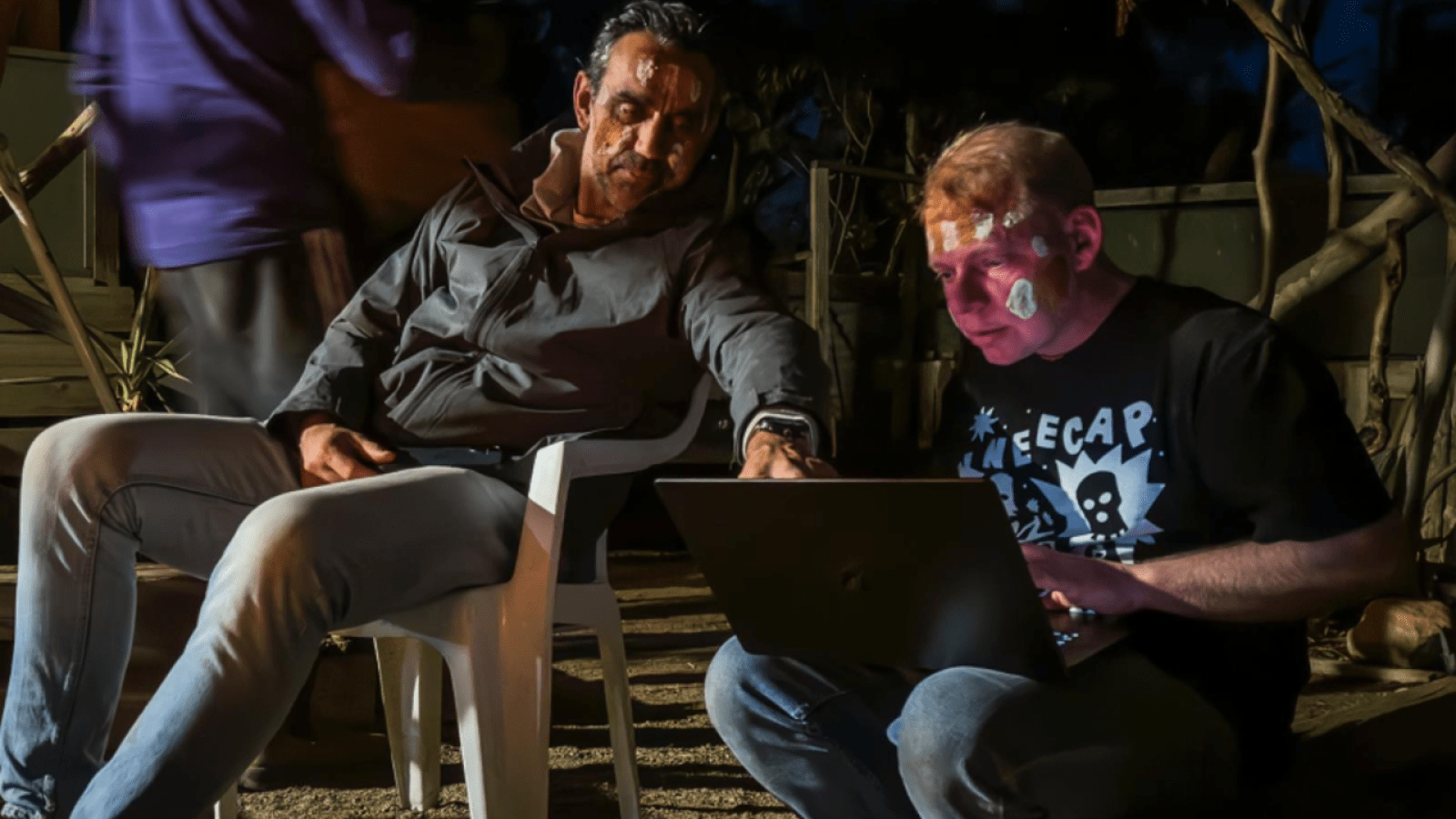 Adam Goodes and Dr Baden Pailthorpe during field work on Adnyamathanha Country, July 2025. Image provided. Credit: Colin Elphick.